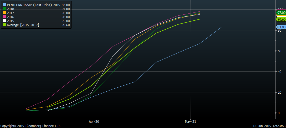 La temporada de siembra de maíz en los Estados Unidos continúa. Fuente: Bloomberg