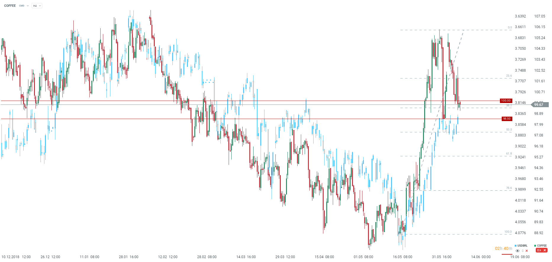 BRL se está fortaleciendo frente al dólar estadounidense, sin embargo, un aumento en los precios del café podría ser incluso mayor. A corto plazo, el café parece estar bien de precio. Fuente: xStation5