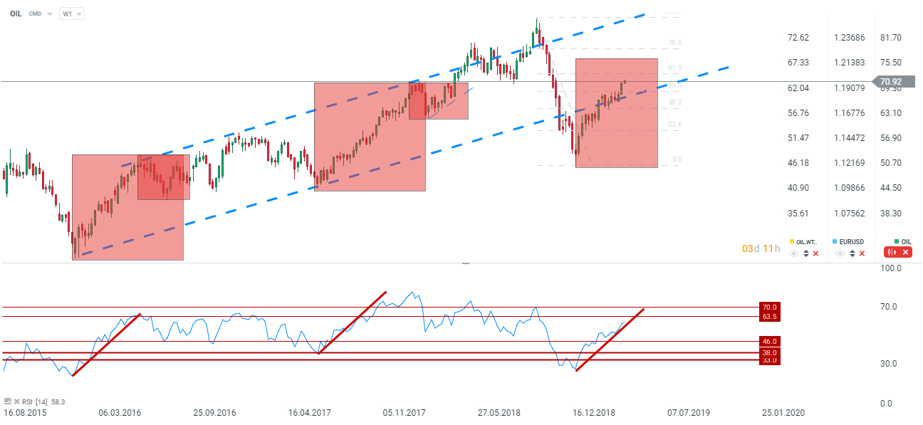 Los precios del Brent se han estancado justo antes de la importante resistencia técnica (el 61.8% de retroceso). El precio podría dirigirse a $ 76 según el análisis presentado en la tabla anterior. Fuente: xStation5