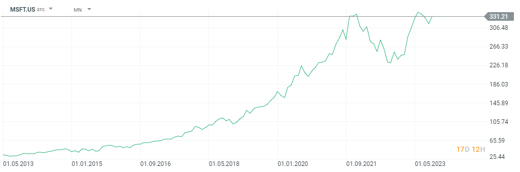 La acción de Microsoft acumula una subida de más del 38% en lo que va de año y ha multiplicado por 3 su precio en los últimos 5 años. Esto es debido a la gran gestión de la empresa y a su diversificación, liderada por un servicio de Cloud con la segunda mayor cuota de mercado y un crecimiento de doble dígito alto