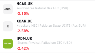 Entre los más bajistas, encontramos al ETF que replica el precio del gas natural, que está inmerso en una tendencia bajista desde hace tiempo. Por otro lado, el ETF relacionado con Pakistán y el del paladio, que copan el top 3.