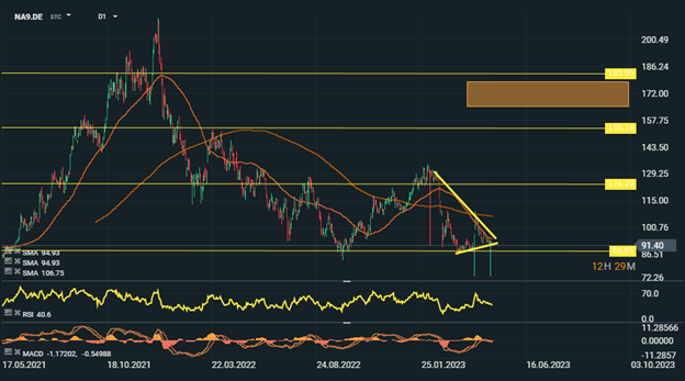 Precio objetivo: 179 € por acción, vemos una posibilidad de revalorización del 96% frente a su precio actual.