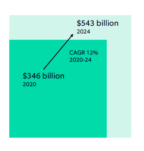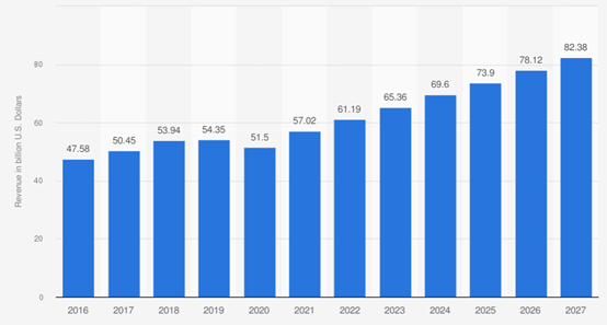 Y se espera que la industria en la que se encuentre Nagarro tenga una proyección de 82.000 millones de € hasta 2027.