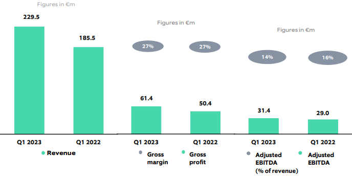 Aumentó su EBITDA ajustado en €10,4 millones, su EBITDA en €12,3 millones y su EBIT en €10,8 millones en el último trimestre de 2022 en comparación con el mismo trimestre del año anterior.