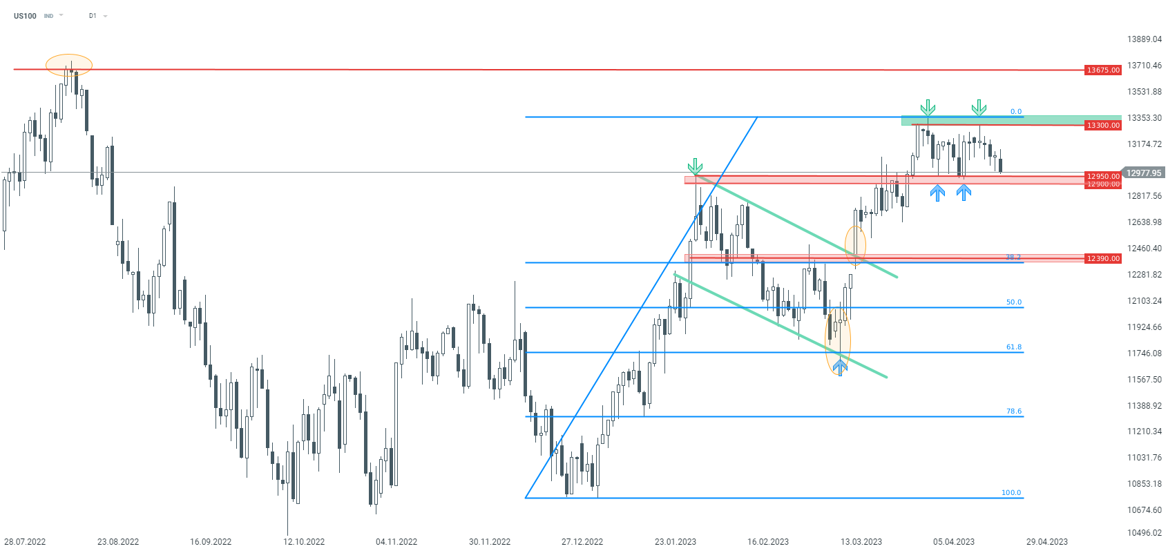 Sin embargo, mirando el marco de tiempo más amplio, el índice US100 permanece en el rango de consolidación entre el soporte en 12900 puntos y la resistencia en 13300 puntos. Parece que hasta que veamos una ruptura en una dirección, el escenario base es una mayor consolidación en los niveles actuales. No obstante, una ruptura hacia arriba o hacia abajo puede ser un pretexto para un movimiento de tendencia más grande.