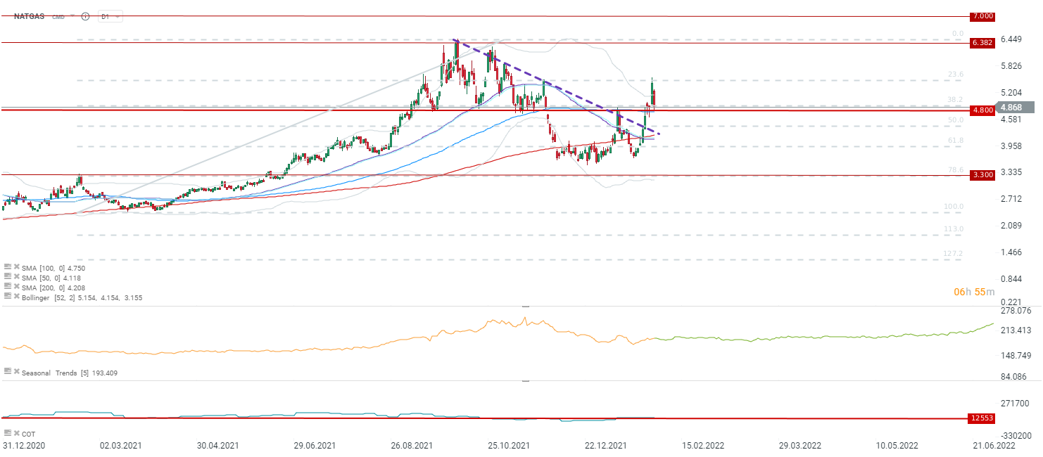 Gas en retirada tras el repunte de ayer frente a previsiones meteorológicas ligeramente mejores. Fuente: xStation5