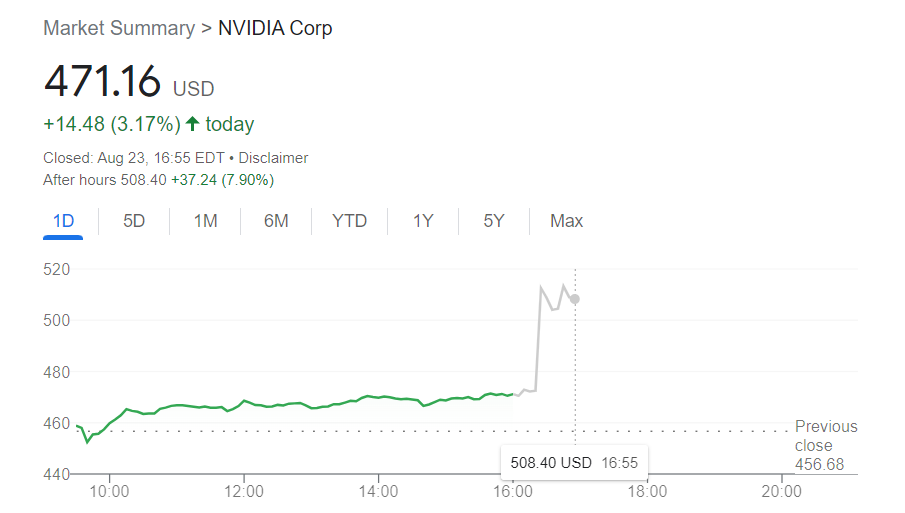 Nvidia ha presentado sus resultados empresariales superando las expectativas. Los Beneficios Por Acción (EPS) se han situado en 2.7 en comparación con una previsión de 2.07. Además, los ingresos han alcanzado los 13.51 mil millones, superando la previsión de 11.13 mil millones. Añadiendo a esto, la compañía ha anunciado una guía de ingresos que se encuentra por encima de las estimaciones iniciales.