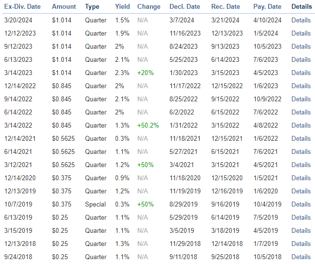 Historial de dividendos de NXP Semiconductors (NXPI)
