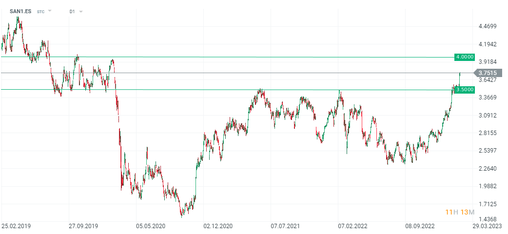 BANCO SANTANDER (SAN1.ES) D1, Fuente: xStation