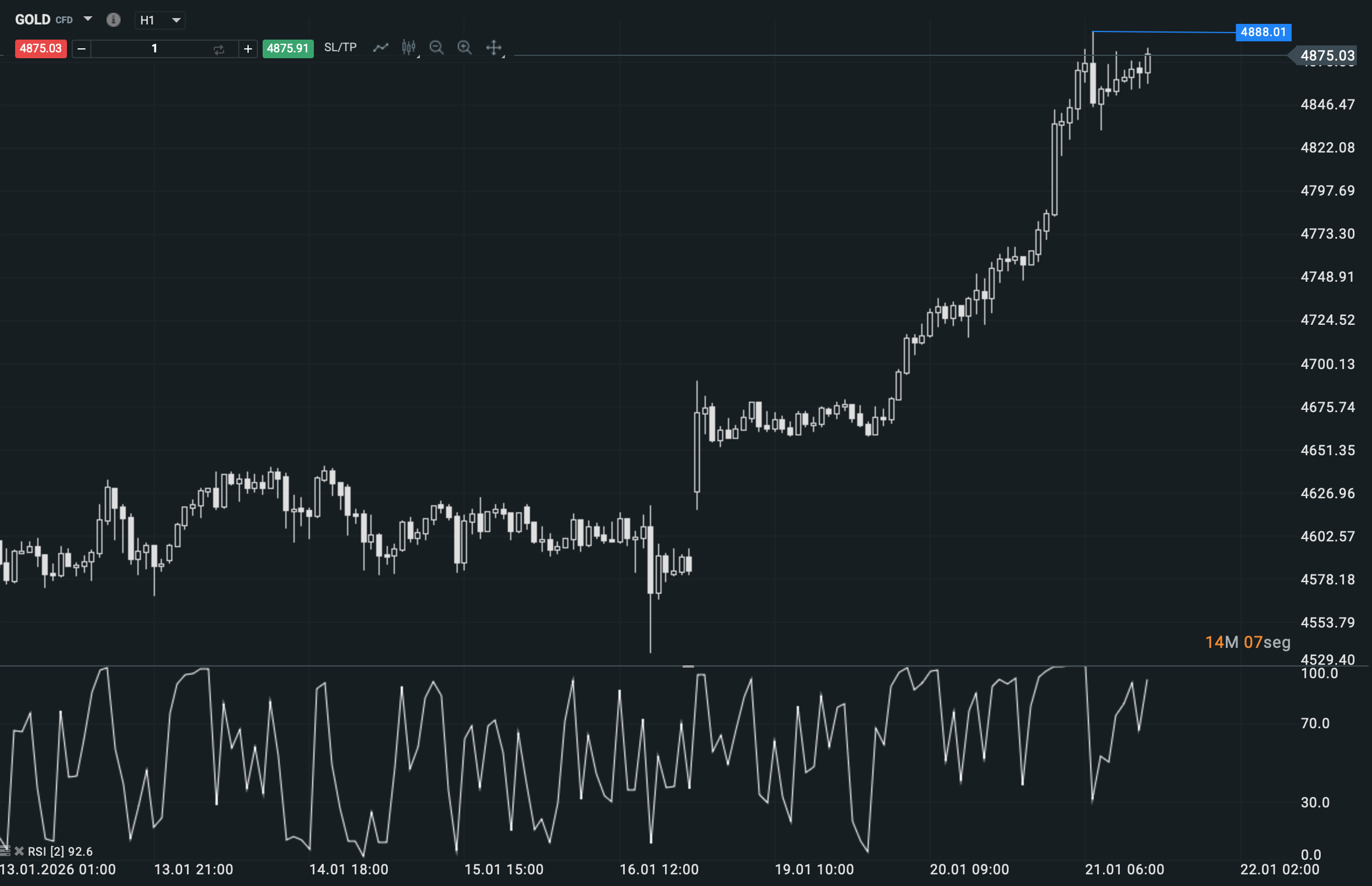 En resumen, el oro no solo ha subido fuerte, sino que está mostrando una estructura sana tras el impulso. Mientras el precio se mantenga consolidando por encima de 4.888, el sesgo sigue siendo alcista y el mercado parece dispuesto a seguir pagando por seguridad. No es un entorno para anticiparse ni para ir contra la tendencia, sino para leer con calma qué hace el precio tras el shock. Y, de momento, lo que hace es aguantar arriba.