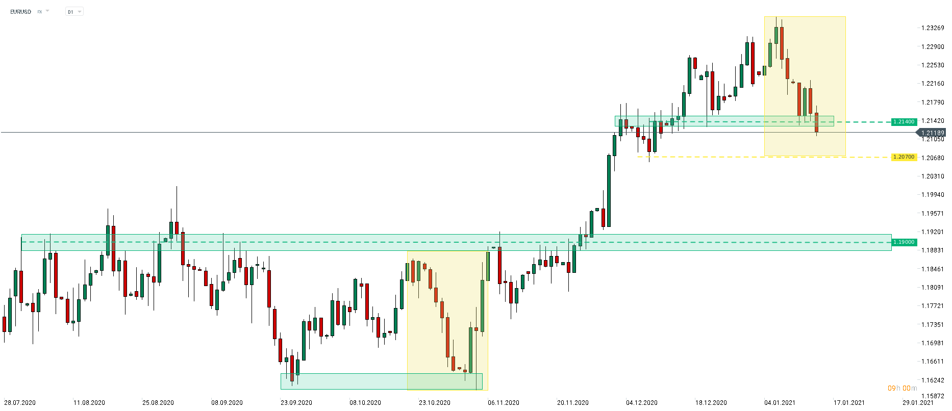 Hasta ahora, la reacción del mercado a los acontecimientos recientes en Italia ha sido limitada. El EURUSD se ha retirado esta semana, pero el movimiento puede atribuirse principalmente a la fortaleza del USD. La ruptura en curso por debajo de la zona de soporte en 1.2140 puede ser preocupante, pero a menos que veamos una ruptura por debajo del límite inferior de la estructura de sobrebalance en 1.2070, la situación alcista permanecerá intacta. Fuente: xStation5