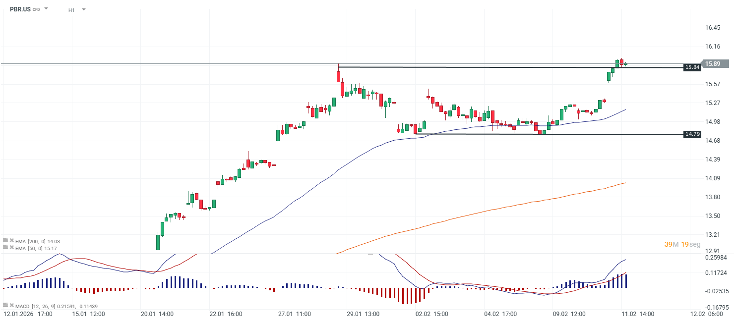 La acción de Petrobras (PBR) sube 34,44% en lo que va de 2026. Hoy la acción sube 3,88% a US$15.93 durante la tarde de la bolsa de nueva york.
