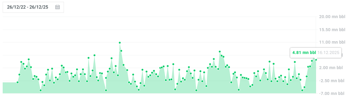 Dicho eso, el panorama de fondo sigue siendo mixto. El Brent se encamina a su mayor caída anual desde 2020, alrededor de -16%, por expectativas de superávit global el próximo año debido al aumento de oferta dentro y fuera de la OPEP+. Es decir: la geopolítica impulsa el corto plazo, pero la narrativa de excedente de oferta limita la probabilidad de un rally sostenido si no aparecen nuevos shocks.