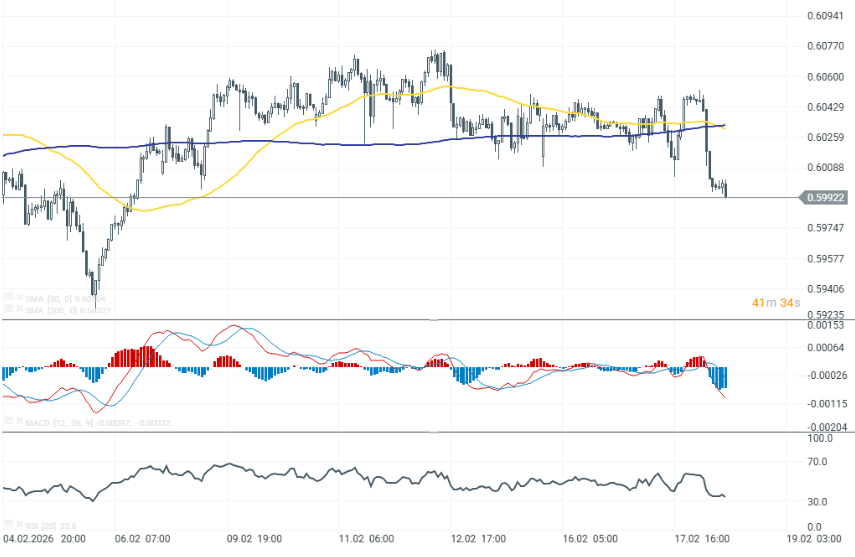 A pesar de la trayectoria ligeramente al alza de los tipos, el mercado interpretó el mensaje como moderado en lugar de agresivo. El dólar neozelandés se debilita notablemente tras la decisión. El dólar neozelandés es la divisa principal más débil del día, cayendo entre un 0,6% y un 0,9% frente a la cesta de divisas.