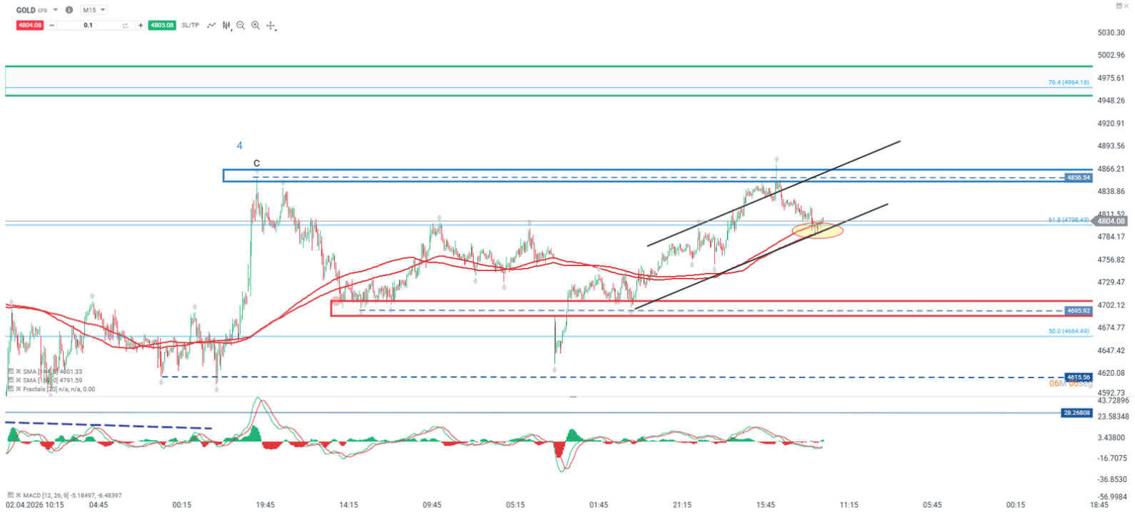 Si el precio logra consolidarse por encima de esta resistencia, podría habilitar una extensión alcista hacia la zona comprendida entre 4.964. Por el contrario, una pérdida de la estructura del canal podría dar lugar a un movimiento correctivo de mayor amplitud, con el soporte principal ubicado en 4.695 región inferior del rango reciente.