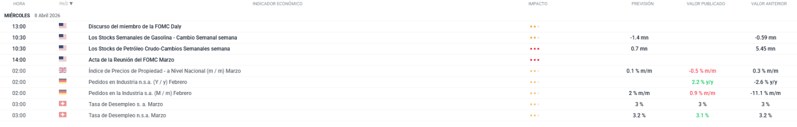 Petróleo: Los futuros del crudo cayeron por debajo de los 100 USD/barril tras el alto el fuego. Los inventarios privados de EE.UU. mostraron un aumento inesperado del crudo (+3,7M barriles vs. -1,6M esperado), mientras que la gasolina bajó más de lo previsto (-4,0M). La EIA revisó a la baja sus estimaciones de demanda mundial para 2026 y 2027.