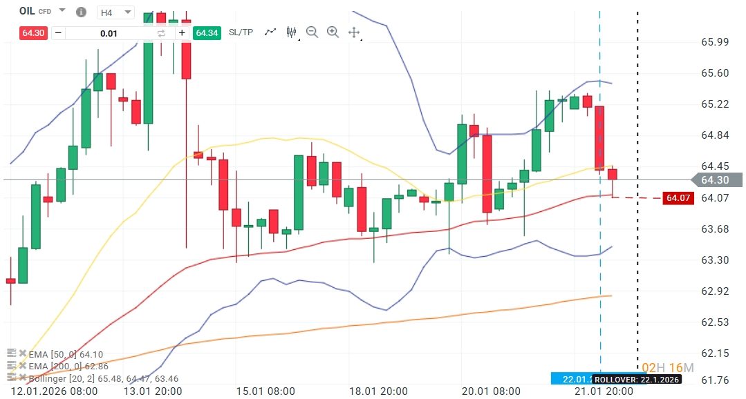 Por su parte, el Brent muestra una resistencia relativa ligeramente superior, pero manteniendo una dinámica similar de oscilación bajo la línea media de sus bandas de Bollinger. A pesar de esta presión externa, su estructura conserva a priori un matiz alcista a corto plazo, dado que tanto la EMA de 50 (US$ 64,10) como la de 200 (US$ 62,86) permanecen por debajo de la negociación actual, actuando como niveles de soporte dinámico. Sin embargo, esta estabilidad estructural está supeditada a los acontecimientos de esta tarde, donde una lectura crítica de los inventarios de crudo podría forzar una convergencia con la debilidad observada en el WTI e invalidar los soportes actuales en busca de una corrección más profunda.