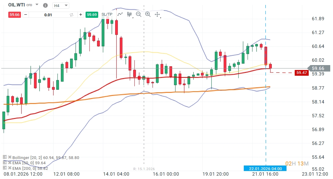 El mercado de crudo atraviesa una fase de consolidación técnica condicionada por la progresiva reducción de la prima de riesgo geopolítica y el impacto de unos inventarios que tienden al alza. El WTI se sitúa por debajo de la línea media de sus bandas de Bollinger de 20 periodos, lo que refleja una volatilidad moderada con un sesgo bajista latente. Aunque el precio todavía se sostiene por encima de su EMA de 200 periodos situada en los US$ 58,82, la atención se centra en la EMA de 50