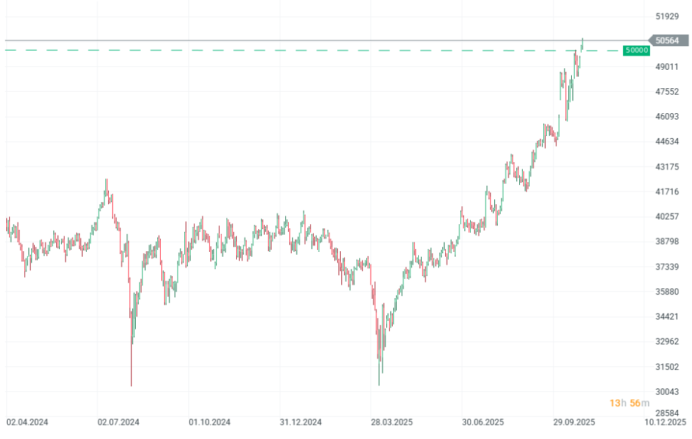 - El índice Nikkei 225 de Japón supera la marca de los 50.000 puntos por primera vez en la historia.