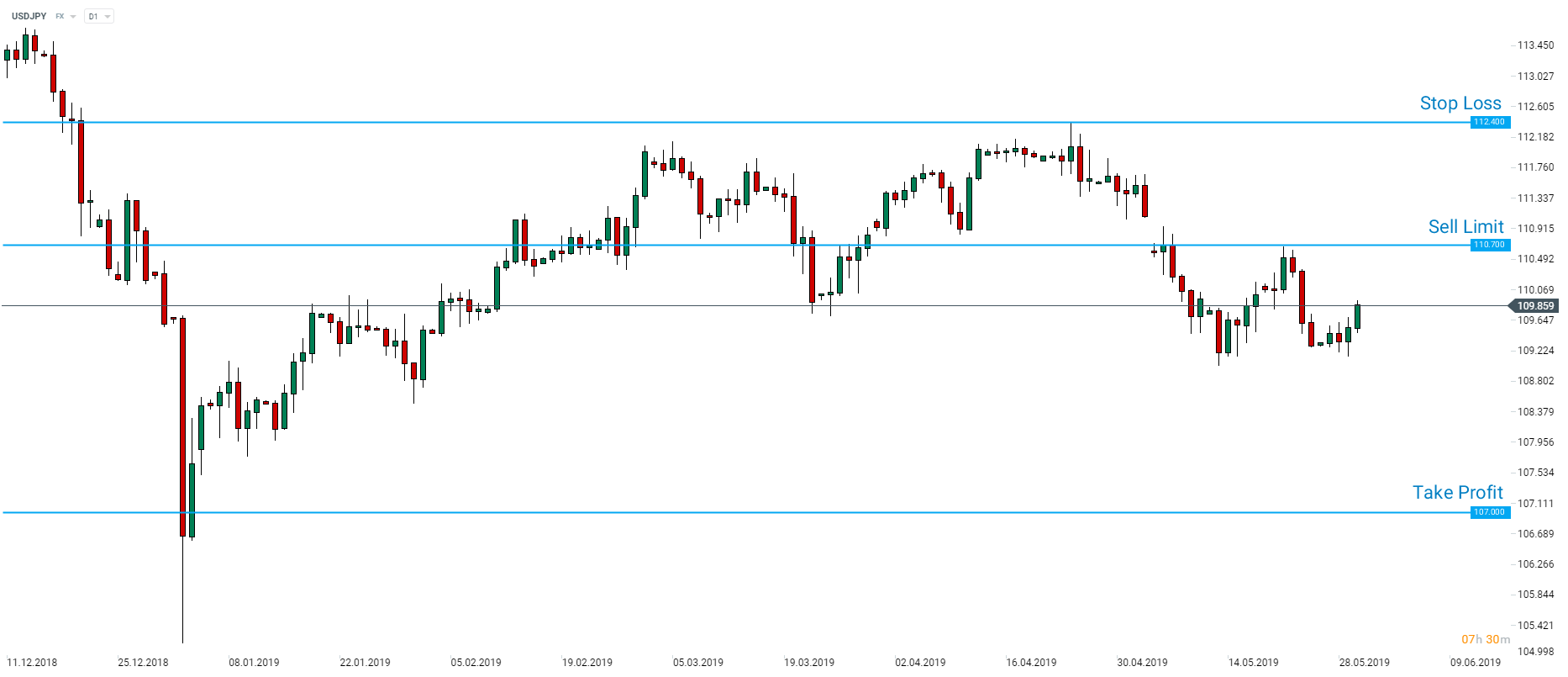 Citi recomienda tomar posición corta en el par USDJPY con orden limitada en 110.70, objetivo en 107.00 y stop-loss en 112.40. Fuente: xStation5