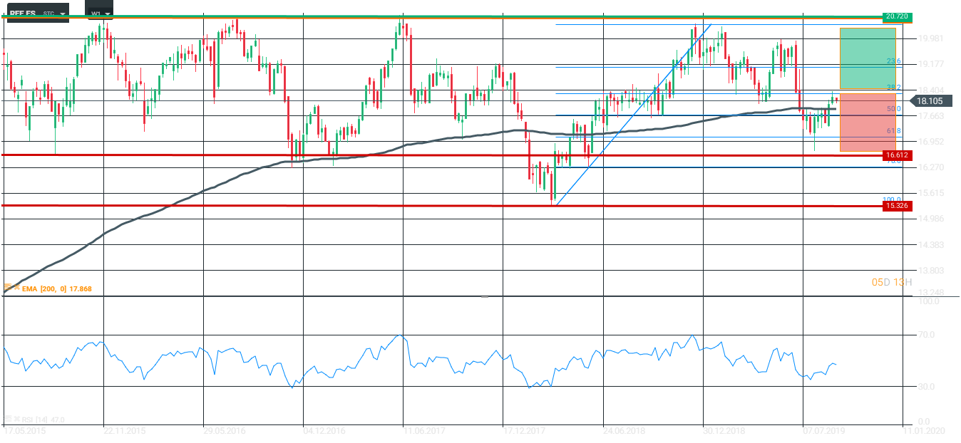Ante la inestabilidad que estamos viendo en las bolsas pensamos que los valores defensivos como son las utilities podrían tener un mejor comportamiento. A pesar de esto, las acciones podrían realizar un movimiento de vuelta, para minimizar el riesgo intentaremos colocar un stop-loss justo por debajo del soporte de los 16,6 euros.