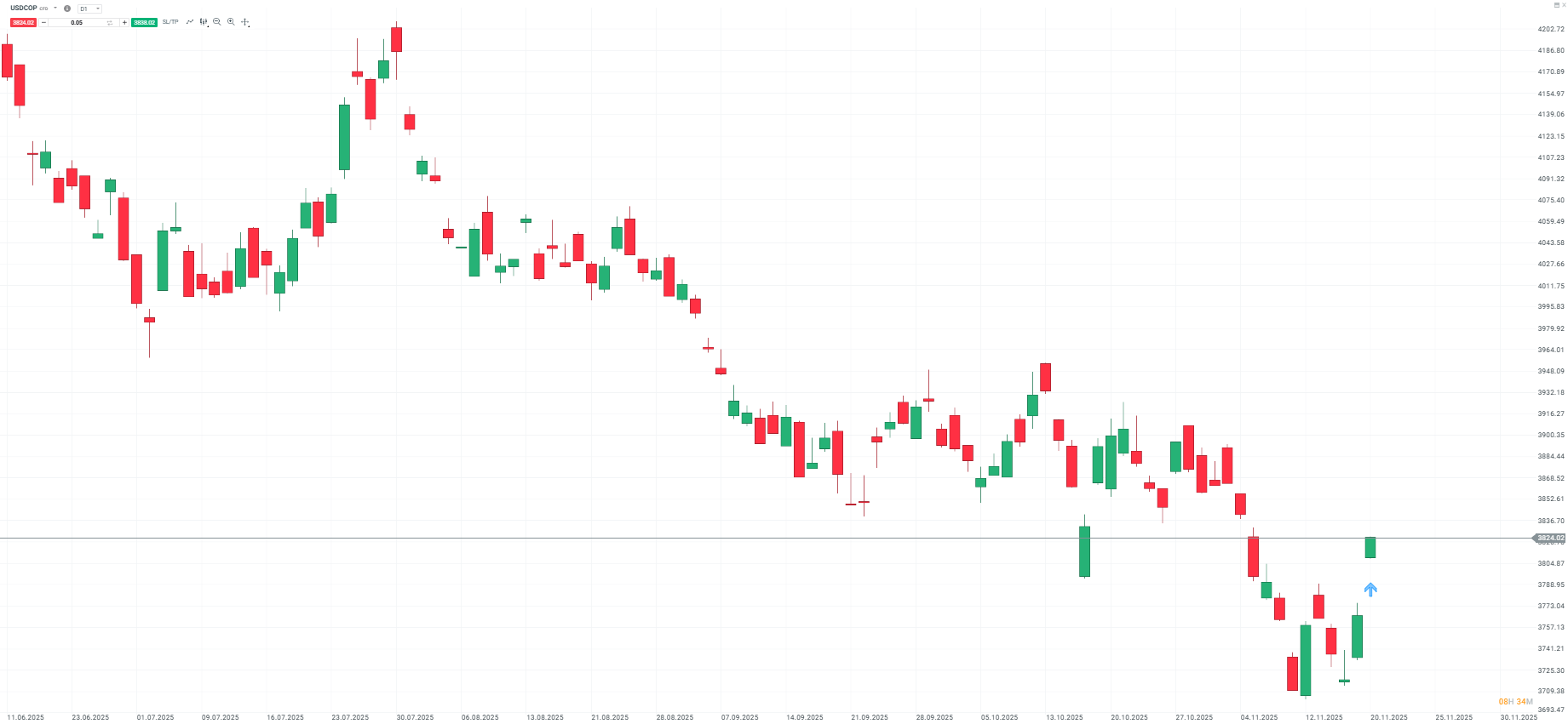 El tipo de cambio en Colombia muestra alta volatilidad: señales mixtas pero con repuntes técnicos desde zona de soporte.