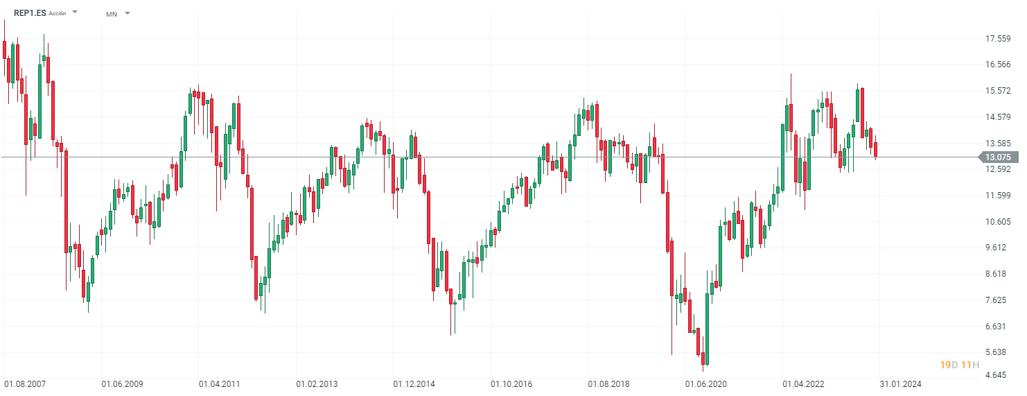 Lejos de ser un simple movimiento comercial, la empresa está tratando de diversificar sus fuentes de ingresos y tener una menor dependencia de los precios del petróleo. Hay que tener en cuenta que aún en torno al 54% de su EBITDA procede de la exploración y producción de petróleo, por lo que aún durante los próximos años el precio de la acción dependerá de una manera importante de los precios del crudo. De hecho, a lo largo del 2023 todo apuntaba a que el precio del petróleo subiría con fuerza e incluso muchos analistas lo situaban por encima de los 100$. Sin embargo, el precio se desinfló y provocó que los resultados del sector fueran peores de lo esperado.