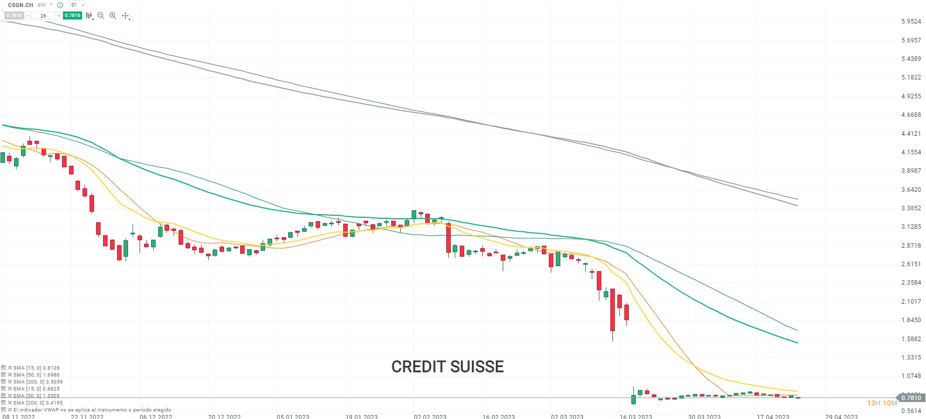 CSGN.CH, D1. La entidad se mantiene a flote de los CHF 0,78 tras el acuerdo de absorción entre UBS y el regulador suizo. Fuente: xStation