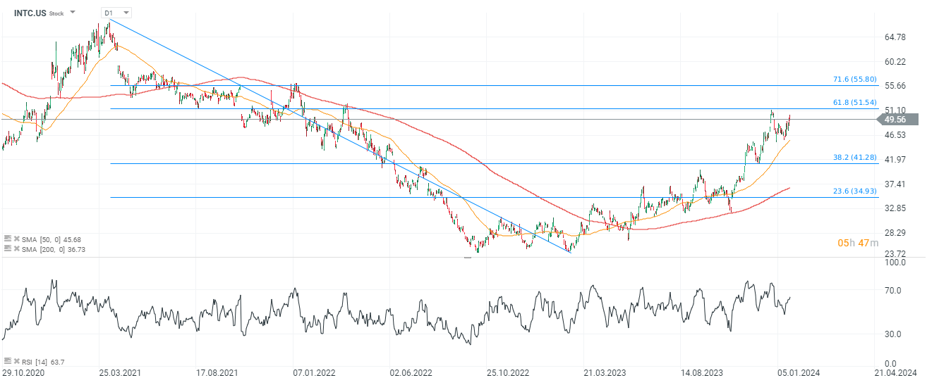 El gigante tecnológico Intel (INTC.US) informará los resultados del cuarto trimestre de 2023 hoy, después de la sesión de Wall Street. La industria espera que las ventas de procesadores hayan superado su mínimo cíclico, y el considerable optimismo en torno a la IA significa que los resultados podrían ser recibidos positivamente por el mercado. Por supuesto, si Intel logra ganar al menos algo de participación de mercado en un mercado de IA en crecimiento. La compañía lleva mucho tiempo intentando reconstruir su posición como fabricante mundial de chips, después de perder participación de mercado frente a TSMC (TSM.US) y AMD (AMD.US). ¿Los resultados desafiarán lo suficiente el status quo y el entusiasmo de los inversores en tecnología? ¿La empresa ofrecerá previsiones más optimistas para el resto del año?