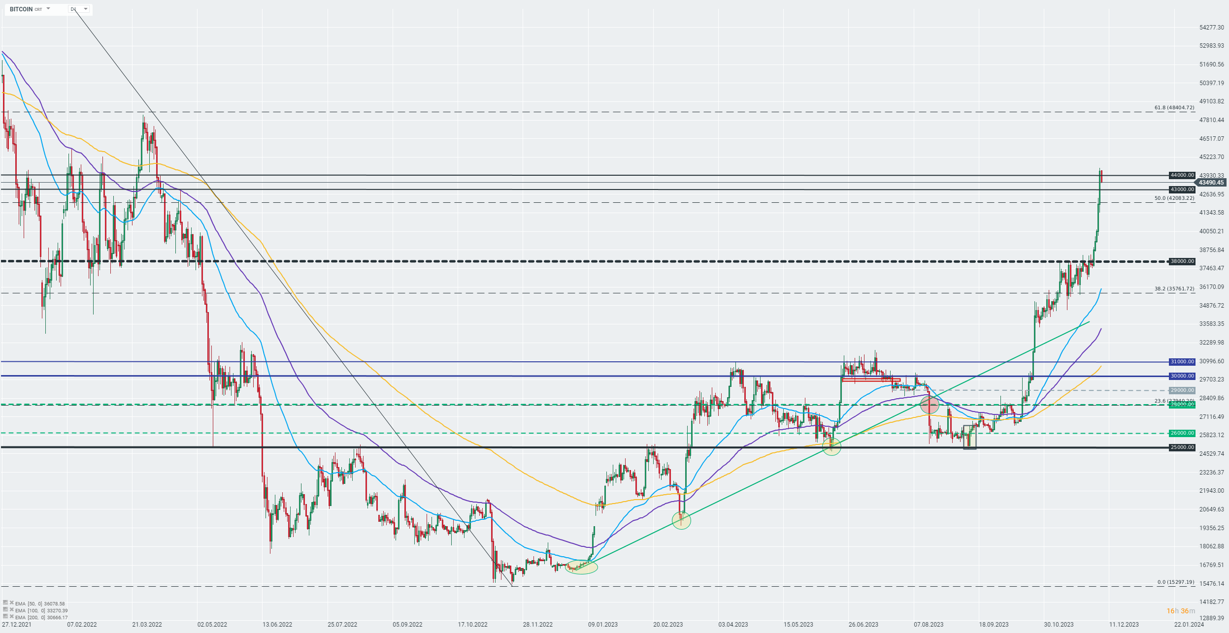 Bitcoin está cayendo cerca del 1,68% durante la sesión de hoy y se cotiza entre una zona de resistencia de 44.000 dólares y un soporte cerca de la zona de 43.000 dólares. La criptomoneda cotiza cerca de sus niveles más altos desde abril de 2022. Fuente: xStation