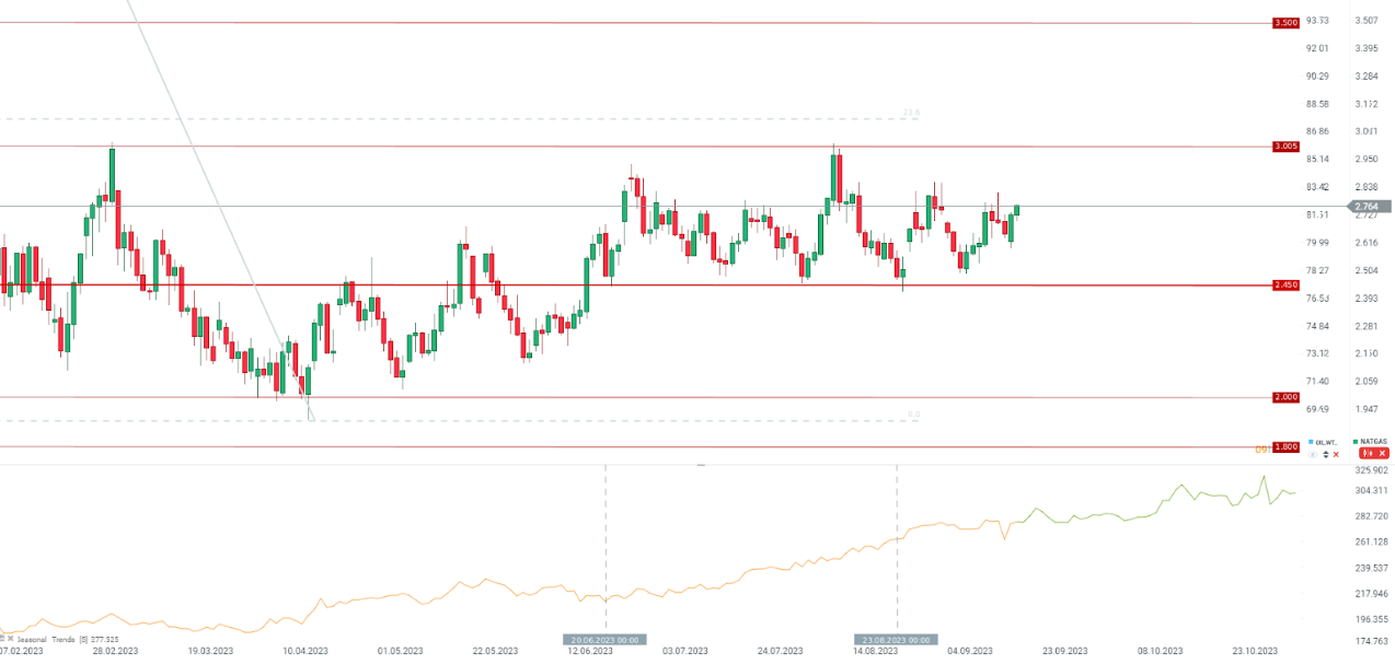 El precio se mantiene en consolidación. Sin embargo, el vuelco del 21 de septiembre resultará en una ruptura "técnica" de este rango y, muy probablemente, el nivel de 3 dólares será un soporte importante. Fuente: xStation5