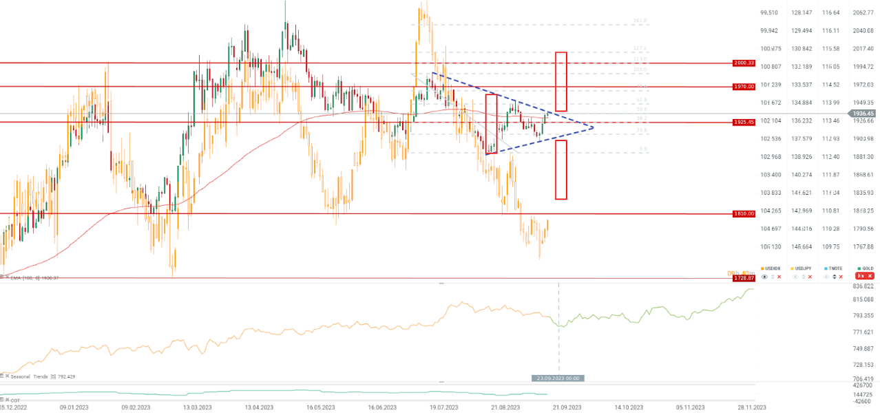 Se presenta una situación técnica interesante en el ORO relacionada, entre otras cosas, con la estacionalidad justo antes de un evento macro importante en forma de decisión de la Reserva Federal. Fuente: xStation5