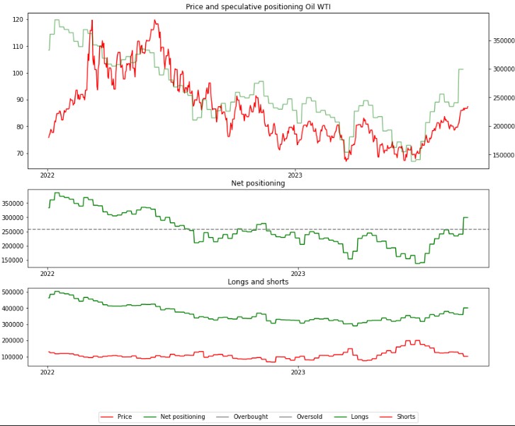 Estamos viendo un aumento masivo del interés especulativo en el mercado del petróleo. El posicionamiento neto ya está por encima de la media de dos años. Fuente: Bloomberg Finance LP, XTB