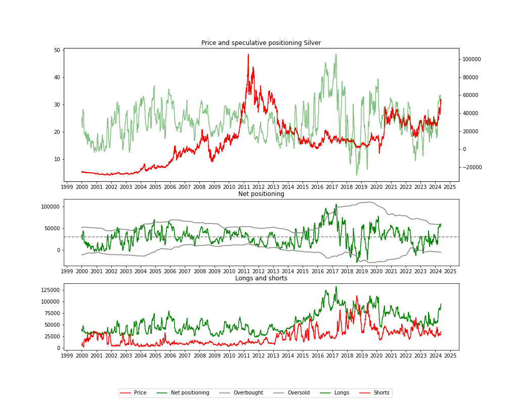 - Se observa un claro aumento de las posiciones largas especulativas sobre la plata