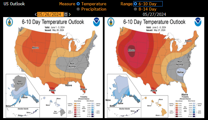 Las temperaturas en Estados Unidos son significativamente más altas de lo habitual. Sin embargo, el número de grados día de enfriamiento en EE.UU. no se desvía significativamente de la media. La demanda máxima de refrigeración se producirá a finales de julio y agosto. Fuente: Bloomberg Finance LP, XTB
