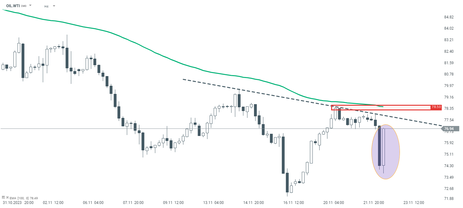 - Debido al fortalecimiento del dólar, podríamos ver un retroceso en el mercado de metales preciosos. El oro volvió dinámicamente por debajo de la barrera de los 2.000 dólares y actualmente cotiza justo por debajo del nivel de 1.990 dólares.