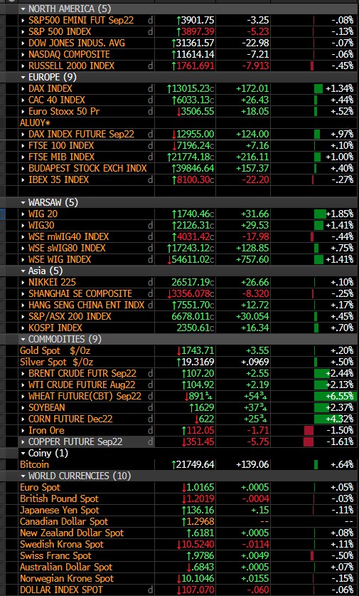 Los buenos datos del mercado laboral de EE. UU. ejercen presión sobre la valoración de las acciones de EE. UU., que están preocupadas por el espectro de un endurecimiento monetario agresivo por parte de la Fed. En el momento de escribir este artículo, los índices de Wall Street cotizan a mínimos moderados. El US100 cotiza a la baja un 0,24%, el US500 pierde un 0,23%. El índice de peor desempeño es el US2000, que ha bajado un 0,51%.
