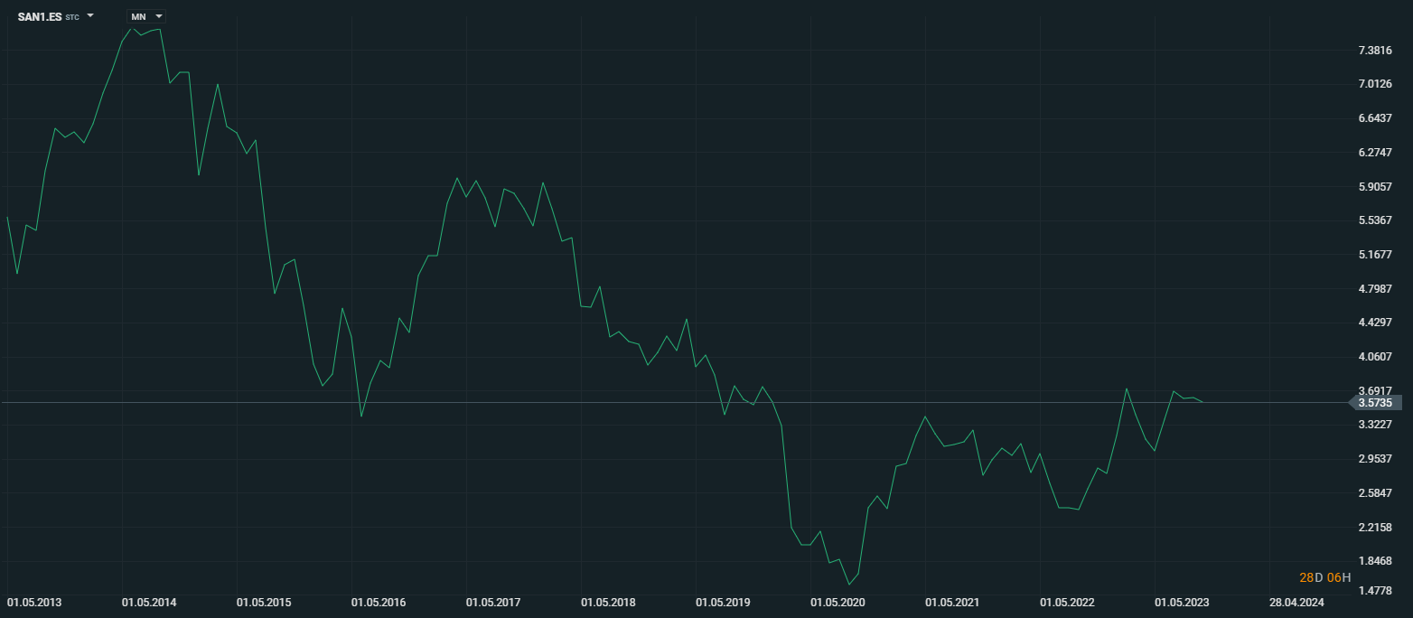 Santander lleva casi un 6% de subida desde la presentación de resultados del pasado miércoles, en la que reportó unas muy buenas cifras. Puedes consultarlas aquí.