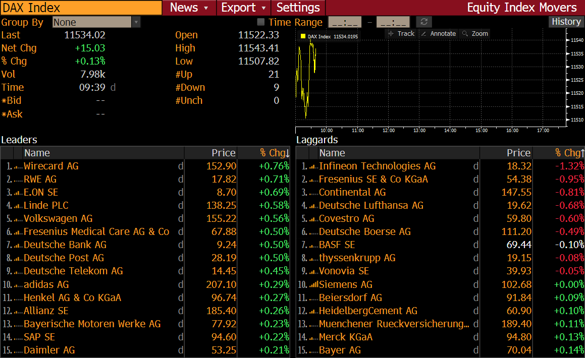 El DAX (DE30 en xStation5) aún negocia en las cercanías del soporte de 11500 pts