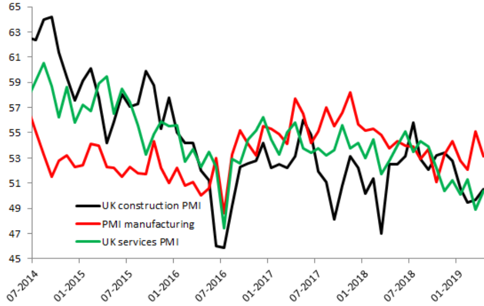 Si bien los servicios PMI reflejaron una mejora como la observada en la construcción equivalente, el panorama general muestra que la actividad económica en el Reino Unido se ha desacelerado. La lectura de fabricación ha sido impulsada por el almacenamiento de Brexit y, por lo tanto, proporciona una imagen de resistencia artificial. Fuente: xStation