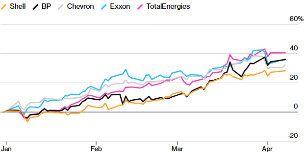 Evolución de la acción de distintas empresas petroleras. Fuente: Bloomberg