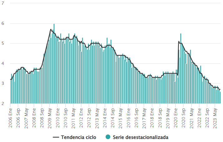 - Cambio Mensual en la TD (cifras desestacionalizadas): Disminución de 0.1 puntos porcentuales.