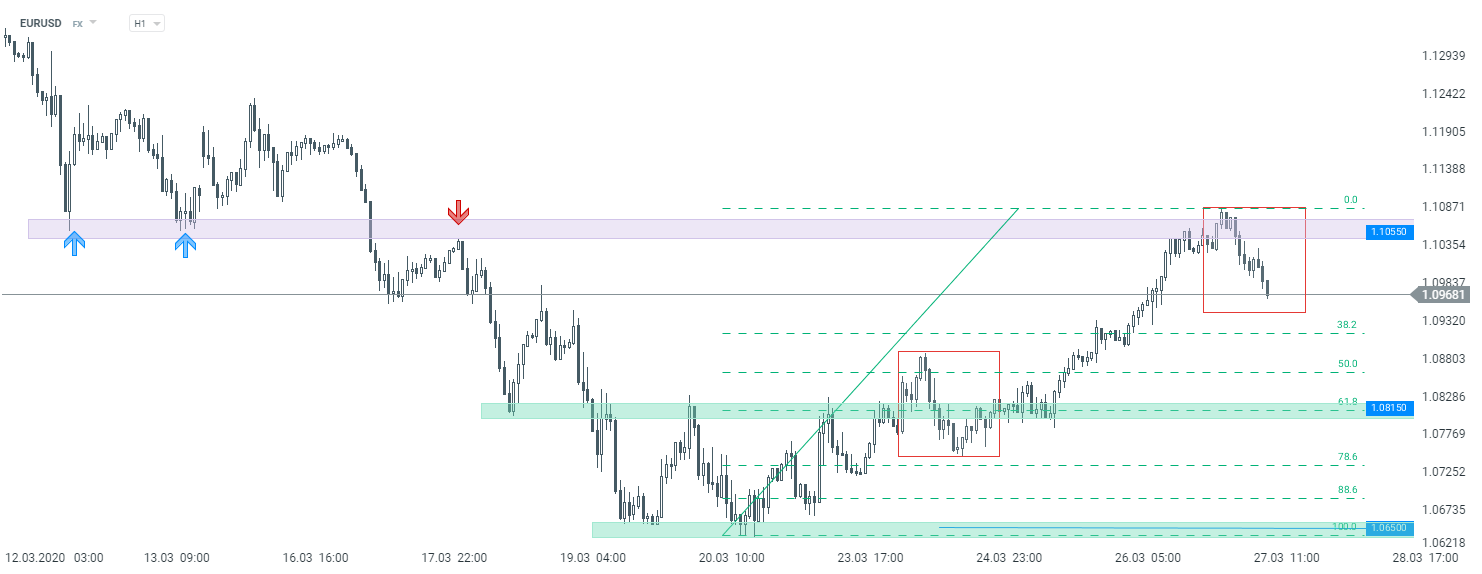 El par EURUSD cotiza a la baja tras rebotar desde su resistencia en 1.1055. La barrera de soporte más cercana la indica el patrón técnico indicado en el gráfico posterior (estructura rectangular sombreada). De conseguir los alcistas conducir las caídas hasta 1.0944, podría observarse un rebote al alza posterior. En caso contrario, el movimiento a la baja podría extenderse hasta 1.0815, zona en que se hallan el nivel 61.8% del Retroceso de Fibonacci y las reacciones previas de precios.