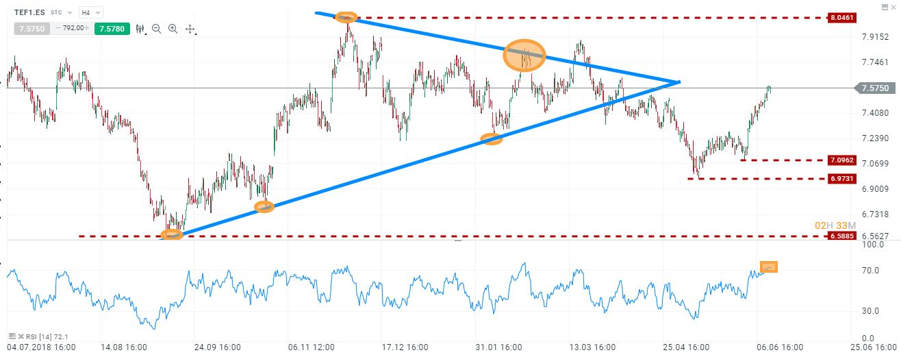 A nivel técnico el comportamiento de TEF ha sido uno de los mejores valores tras el rebote en los 6,90€
