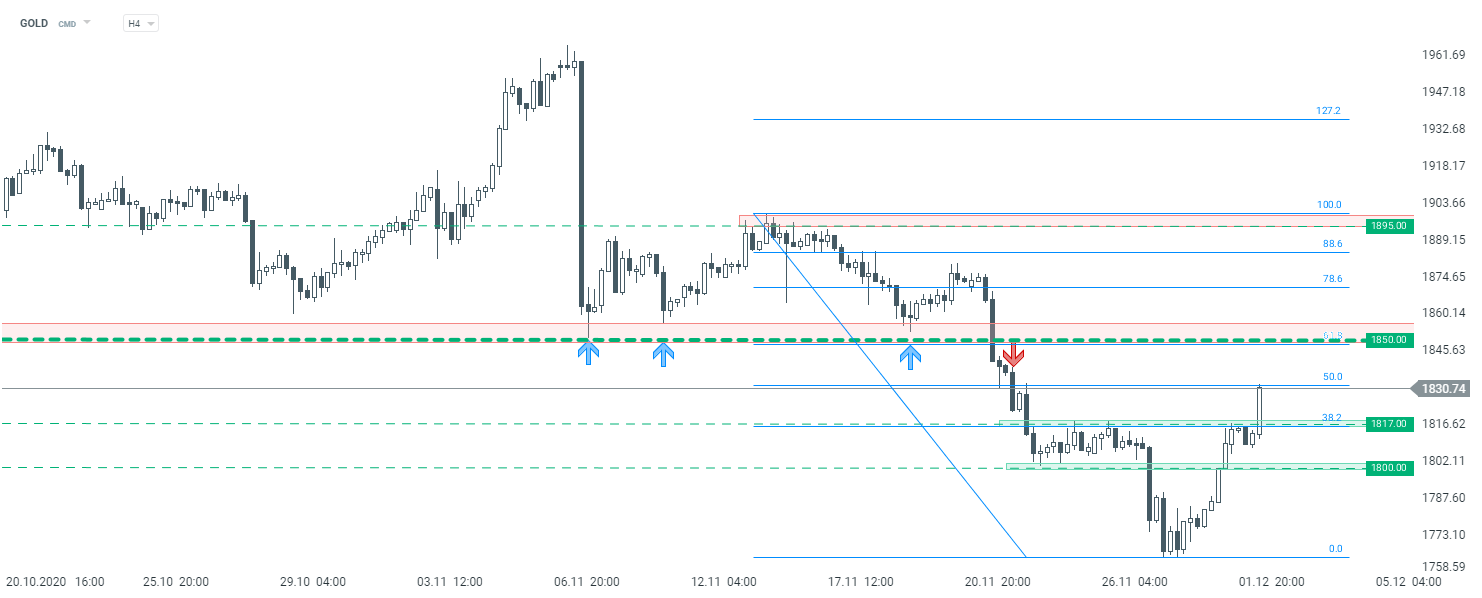 El mercado del oro ha estado operando en una tendencia a la baja recientemente. Sin embargo, hoy se puede ver una corrección dinámica al alza. Si prevalece el sentimiento actual, el área rota anterior en $ 1,850 podría estar en riesgo. Sin embargo, en caso de un fuerte repunte, se debe tener en cuenta que el sentimiento a corto plazo sigue siendo bajista. Si los vendedores logran detener la corrección en curso en el nivel de $ 1,850 antes mencionado, se podría iniciar otro impulso a la baja. Por otro lado, romper por encima de él puede abrir un camino para un movimiento ascendente más grande, con una resistencia de $ 1,895 como un objetivo potencial.