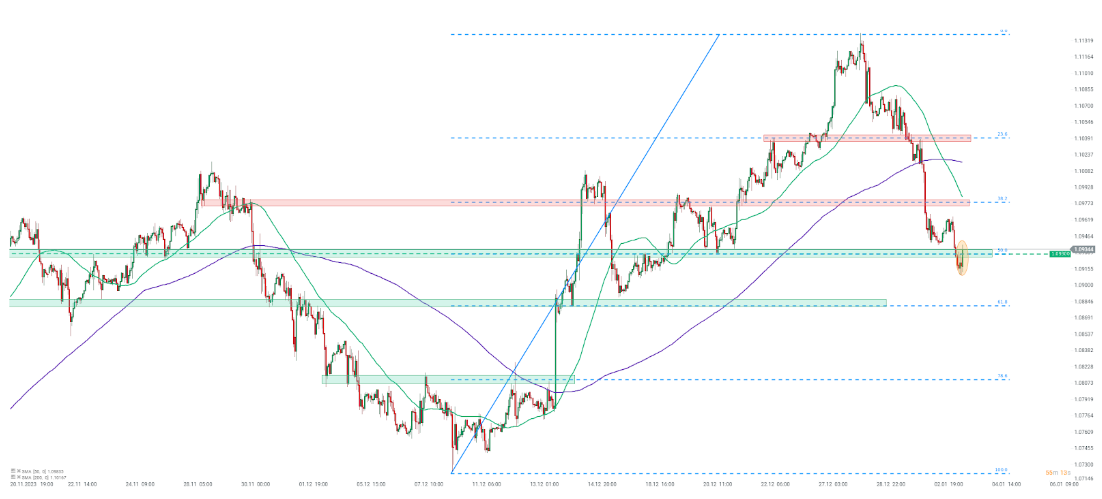 El dólar estadounidense se debilitó tras las publicaciones, y el EURUSD intentó volver a superar la zona de precios de 1,0930, marcada con un retroceso del 50% del movimiento alcista lanzado a principios de diciembre de 2023. Fuente: xStation5