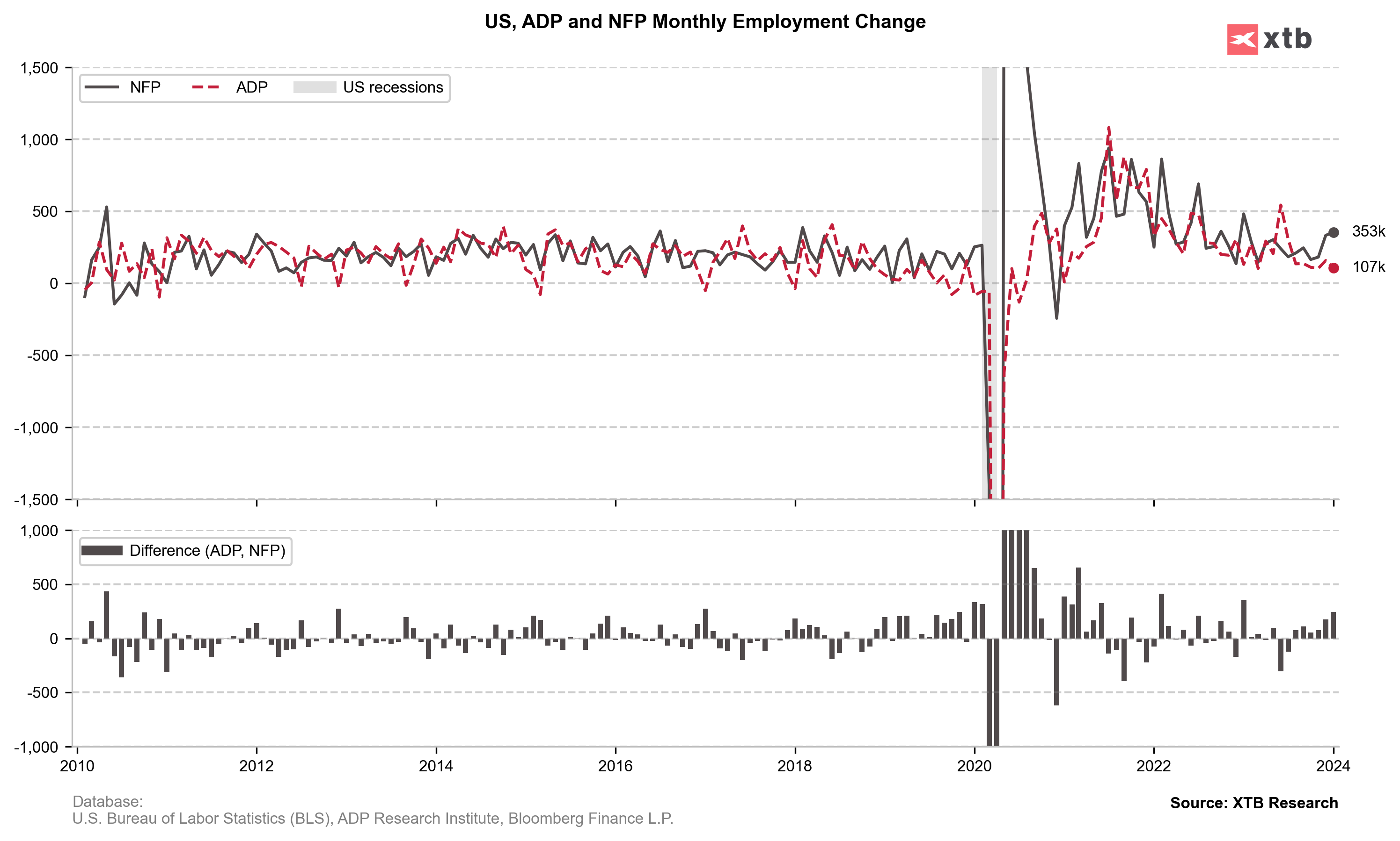 El crecimiento del empleo fue casi el doble de lo que esperaba el mercado, mientras que el crecimiento de los salarios se aceleró significativamente. La tasa de desempleo se mantuvo sin cambios en el 3,7%, a pesar de un repunte esperado al 3,8%. En resumen, ¡no hay nada en el informe que pueda justificar rápidos recortes de tipos por parte de la Reserva Federal!