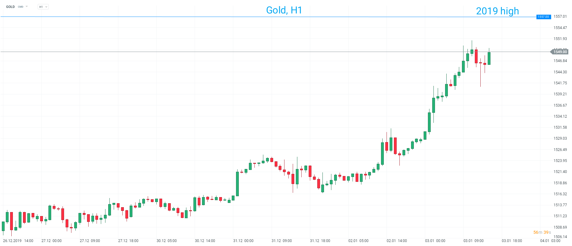 El oro cotiza al alza tras la publicación de los datos, fluctuando apenas 10 USD/onza por debajo de su máximo registro en lo que va de 2019. Fuente: xStation