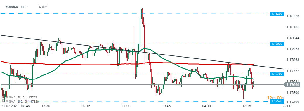 El EURUSD experimentó una reacción relativamente pequeña a la publicación de datos de hoy. El par de divisas más popular continuó cotizando alrededor del nivel de 1,1765. Fuente: xStation5