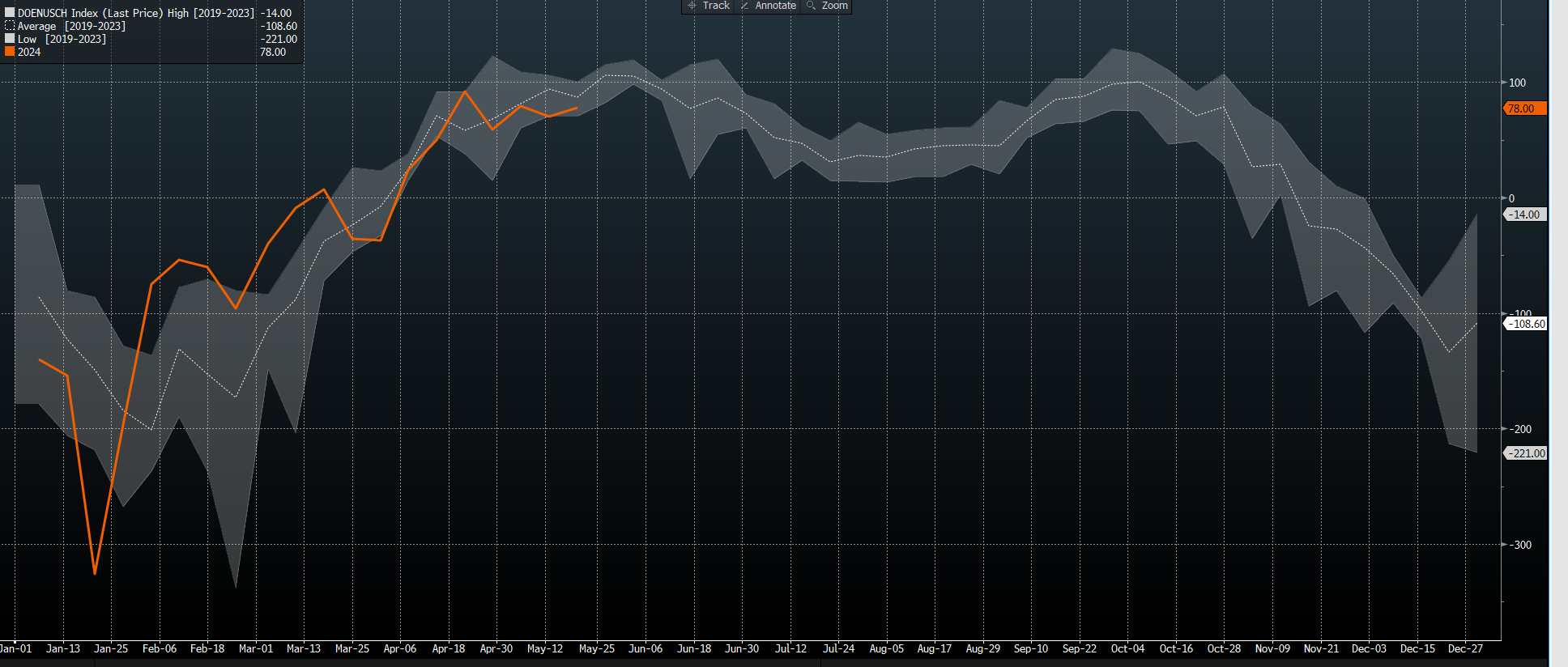 El cambio en los inventarios de gas natural de la EIA fue de 78 bcf (mil millones de pies cúbicos) frente a los 85 bcf esperados y los 70 bcf anteriormente. El Gas Natural cae tras este cambio de lectura.